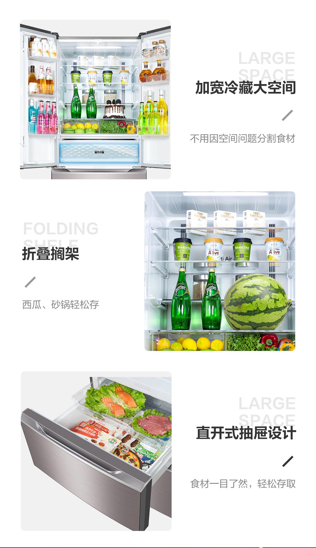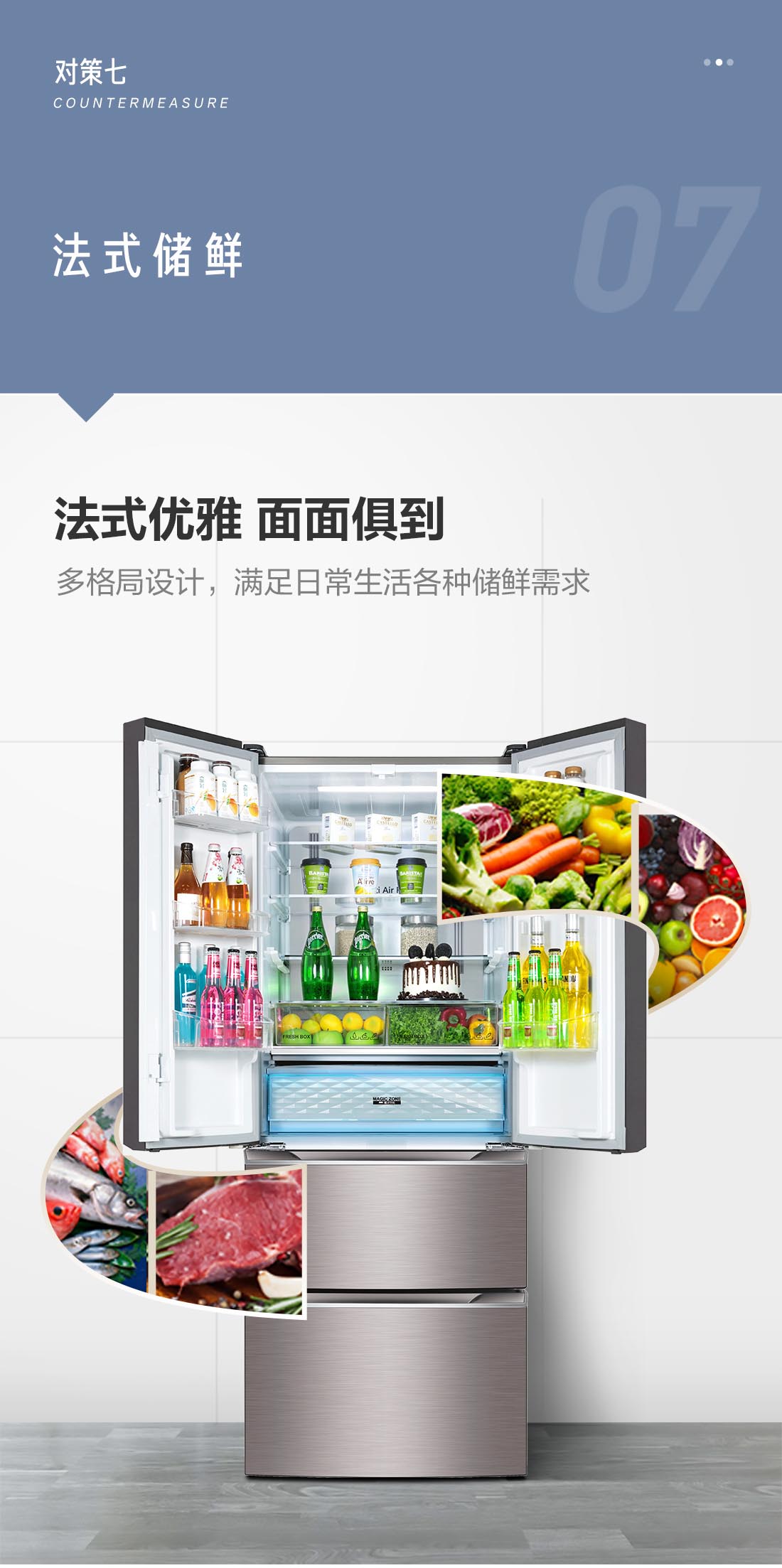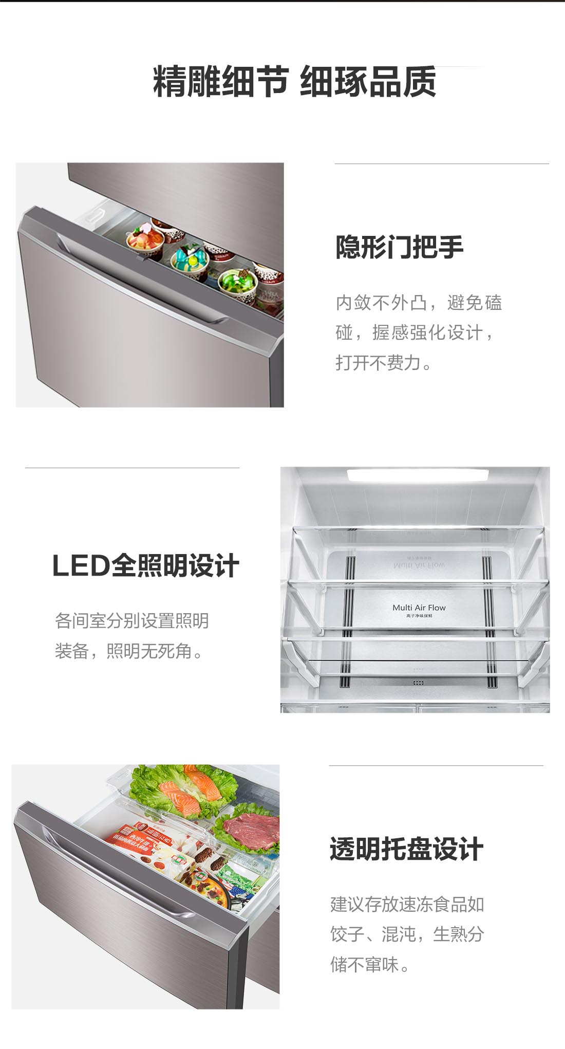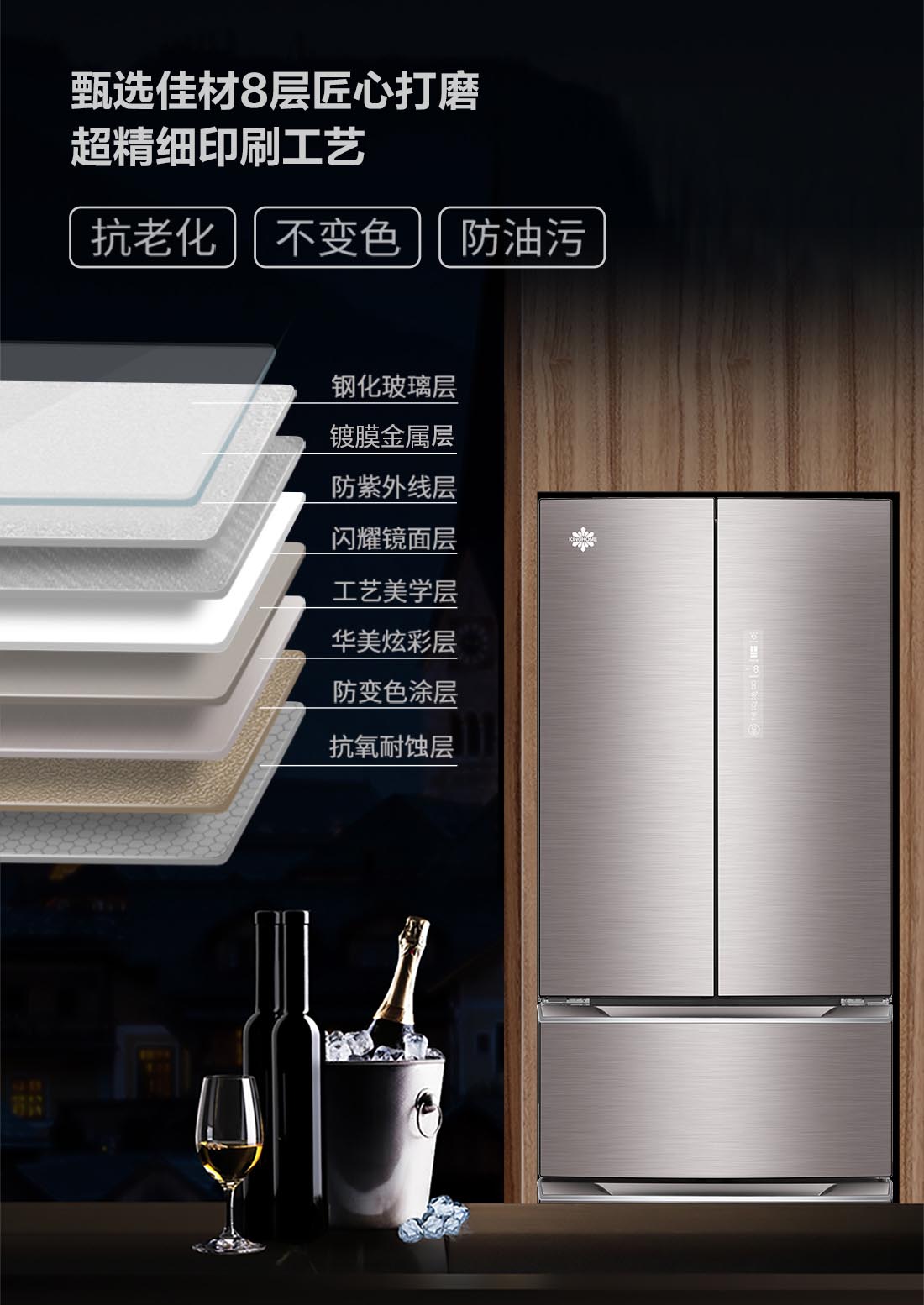 搭載-5℃瞬凍黑科技,鮮嫩兩星期,輕松一刀切。細(xì)胞級(jí)養(yǎng)鮮,營(yíng)養(yǎng)流失少。搭載-3℃嫩凍黑科技,食材不結(jié)冰,鮮嫩一整周。智能全變頻技術(shù),恒溫保鮮,節(jié)能靜音。