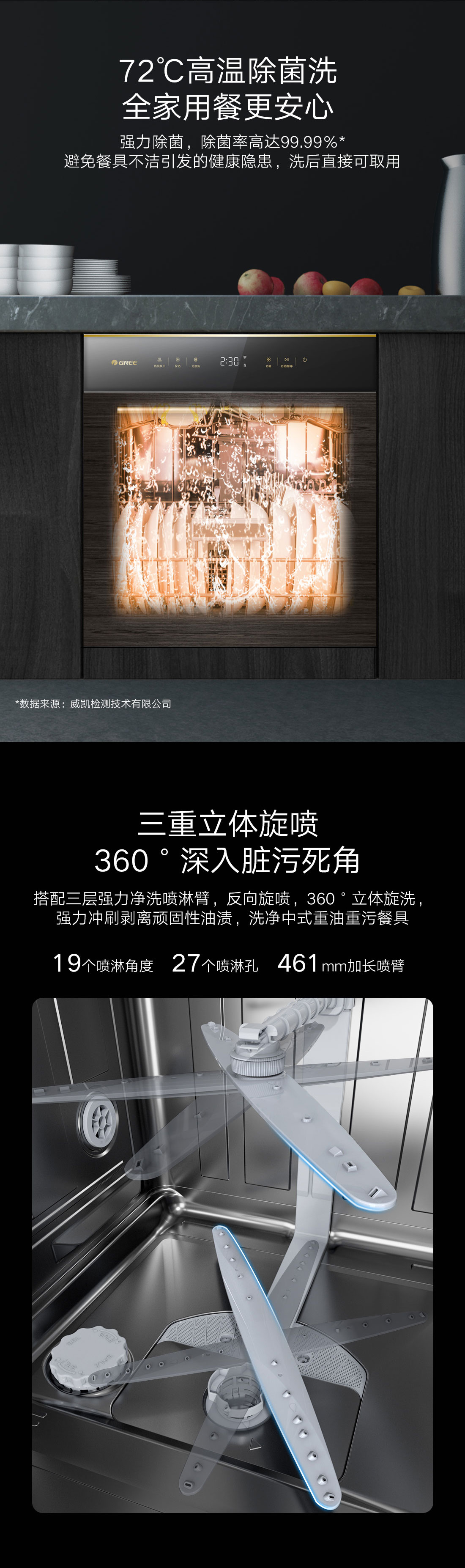 搭載瀑式增壓強洗科技,36KPa洗凈深層菌污,除菌率達99.99%;洗烘除存一體,存放7天也干爽