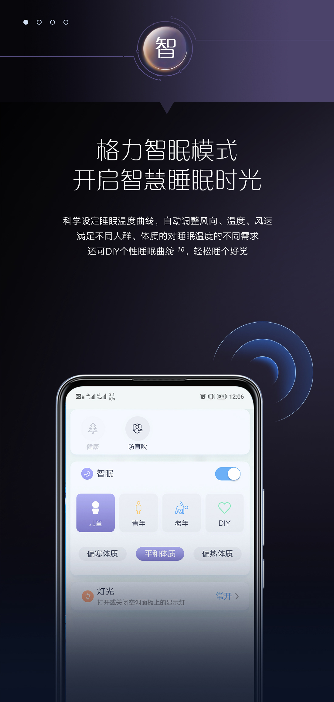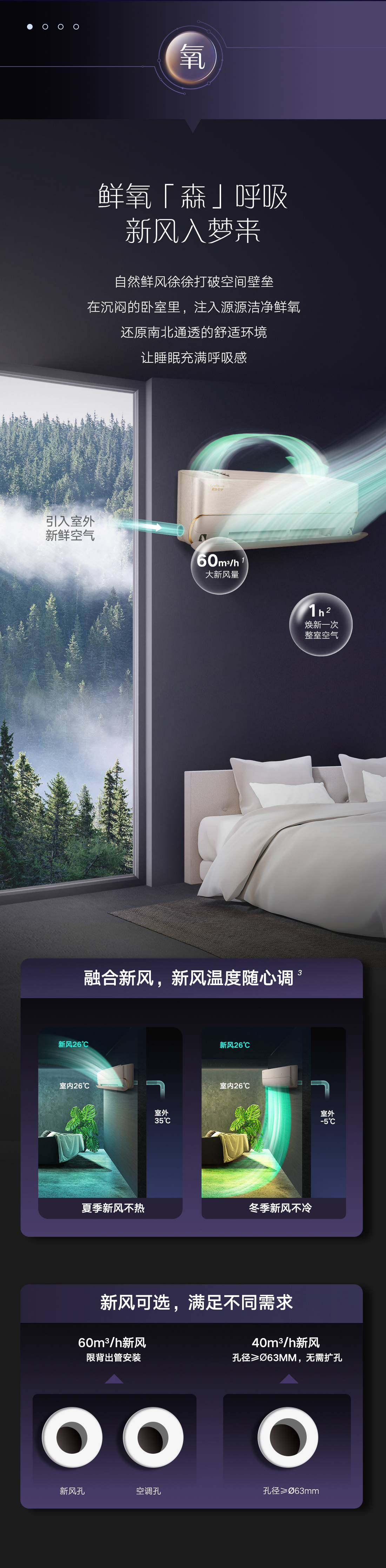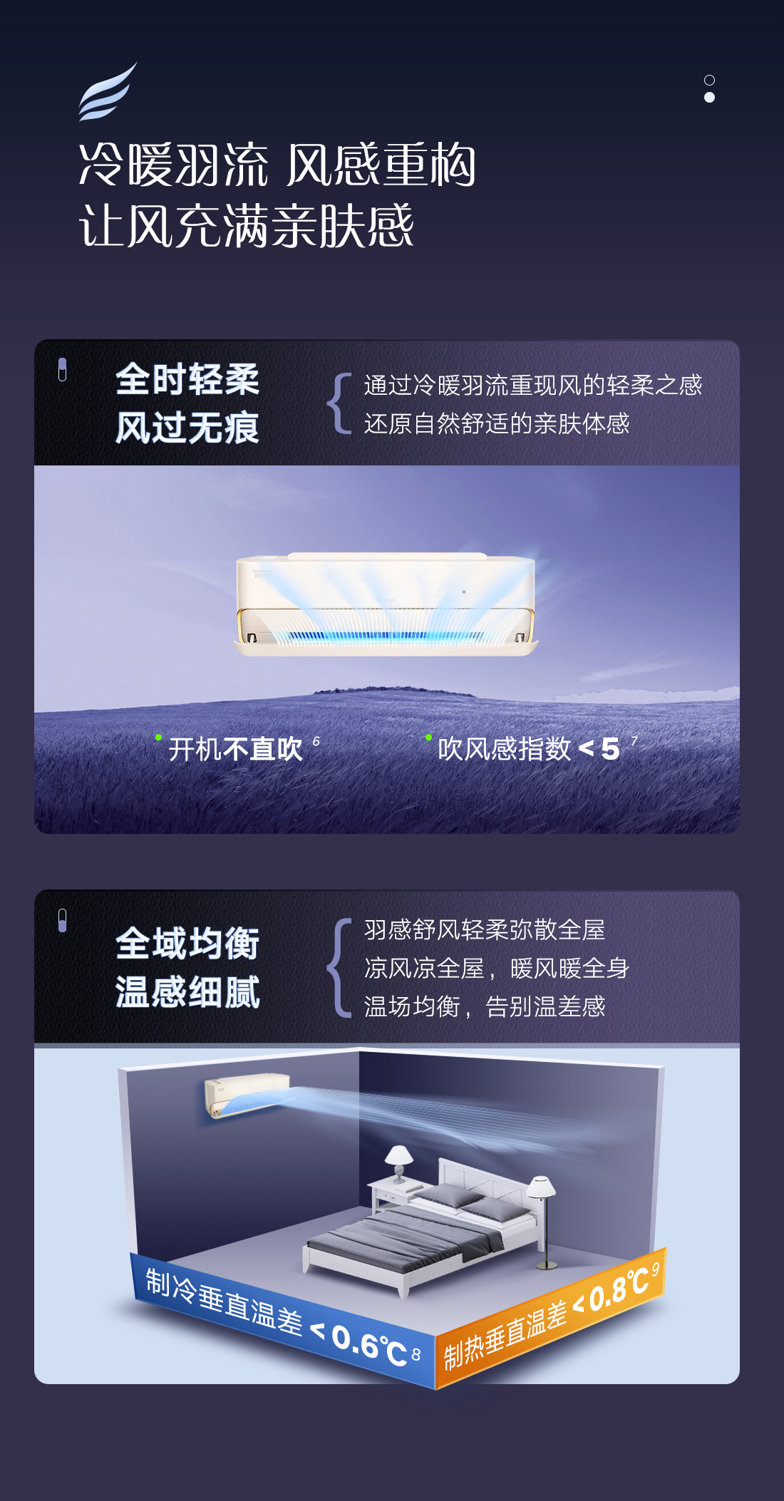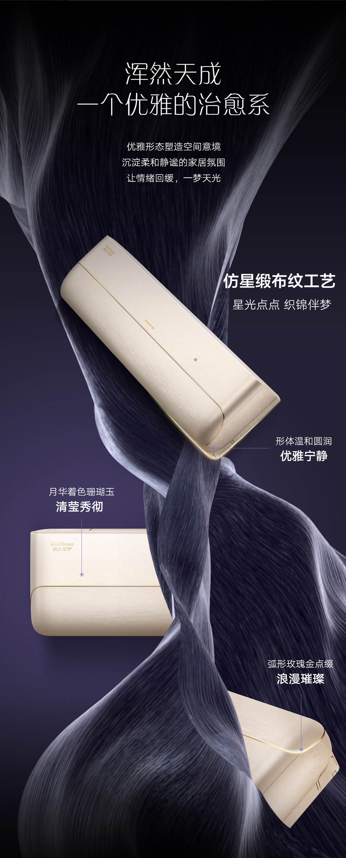 渾然天成,一個優雅的治愈系。仿星緞布紋工藝,星光點點,織錦伴夢。舒氧智眠科技,柔羽風感遇上自然鮮氧,臥室成為身心的棲居圣地。情緒回緩,一夢天光。