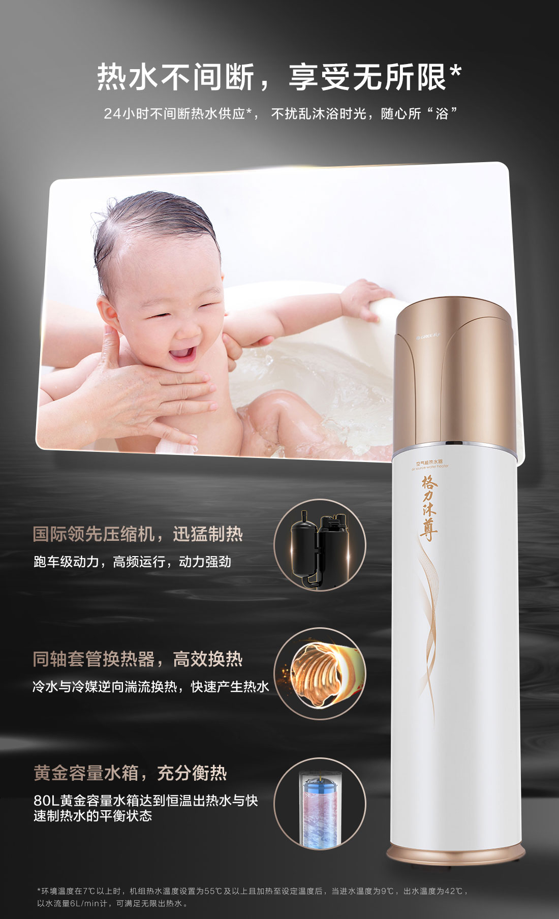 24小時不間斷熱水供應,恒溫熱水隨時享用,且搭載特有采暖系統,一機兩用,滿足您的熱水需求和采暖需求